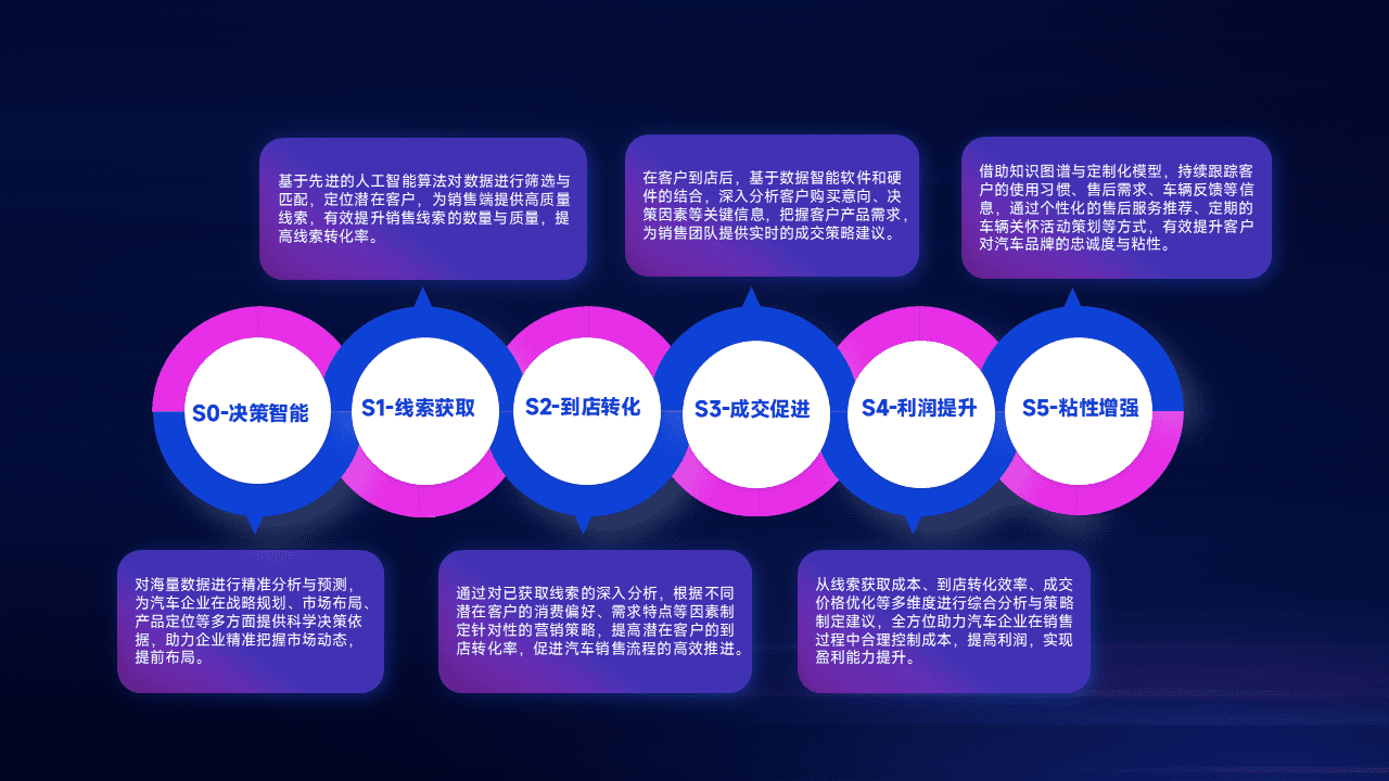通过拓宽潜在客户来源、、、优化线索分配并提高到店转化率,,,以增强销售效率。。同时,,,,利用线索数据不断优化分析模型,,,有效提升转化率,,,扩大营销影响力。。。。